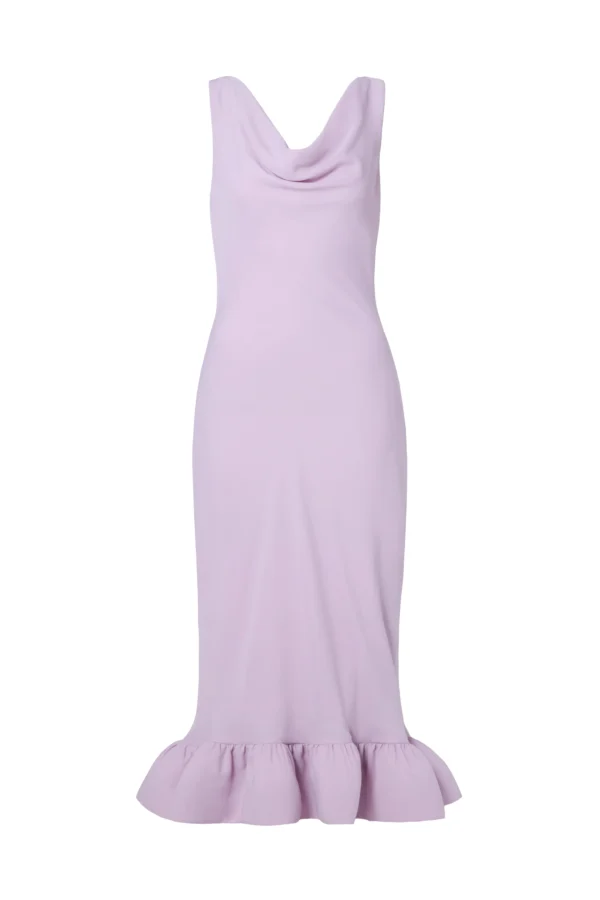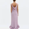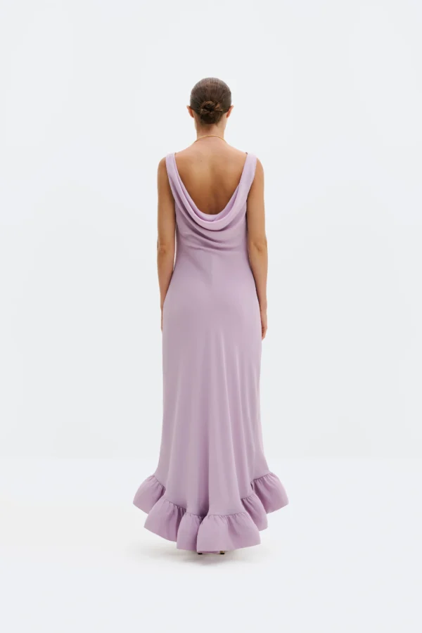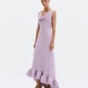 Maxikleid mit Wasserfallausschnitt und Volants.