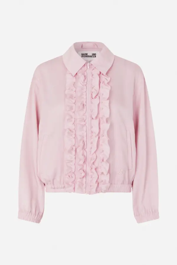 visit usDie Jacke Beathe ist mit Volants auf der Vorderseite versehen, die für einen frechen Twist sorgen. Sie hat eine lockere Passform, einen Kragen und überschnittene Schultern, elastische Saumabschlüsse, einen Reißverschluss sowie ein gesticktes BP-Logo am Saum.