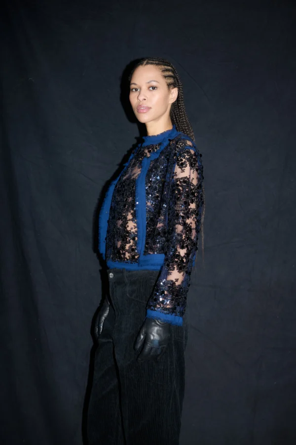 The Bethina Jacket is a cropped sequins jacket that adds some glamour to your wardrobe. The sheer jacket has many unique details such as sequins detailing, hook closure and frayed hems, which add a hint of edge to the chic silhouette. Perfect for layering, the jacket is a bold yet versatile piece for special occasions and elevated everyday looks.