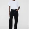 visit usThe Hugh Jean is a relaxed, ’90s-inspired style constructed from midweight rigid organic cotton denim without stretch in a faded black wash with vintage-inspired grinding, hand sanding, and highs and lows throughout.